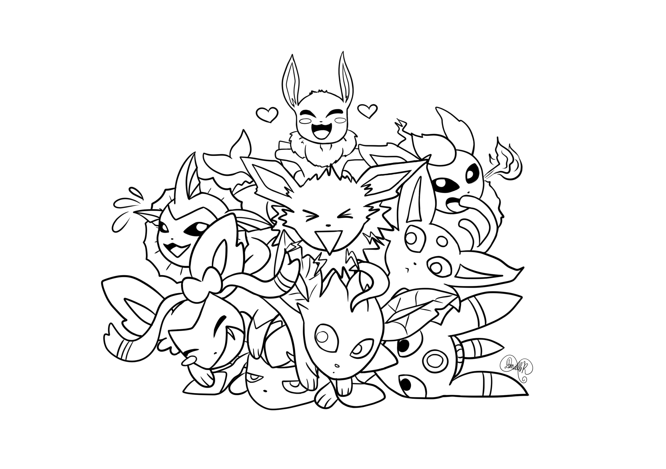 10 dibujos para colorear de Eevee y sus evoluciones.