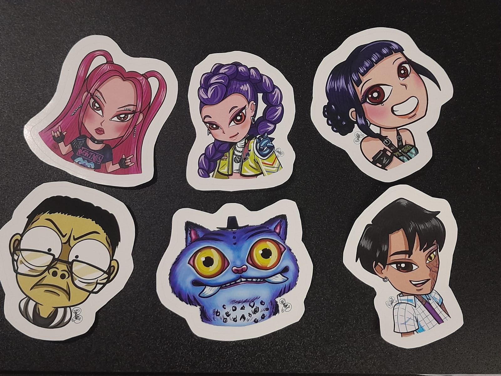 Pack de 6 stickers de 60 x 70 mm, adhesivo común troquelado.